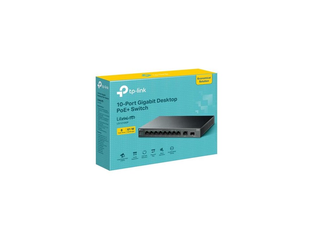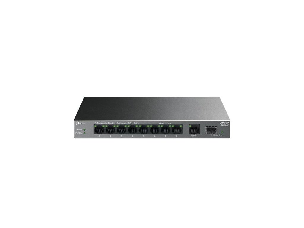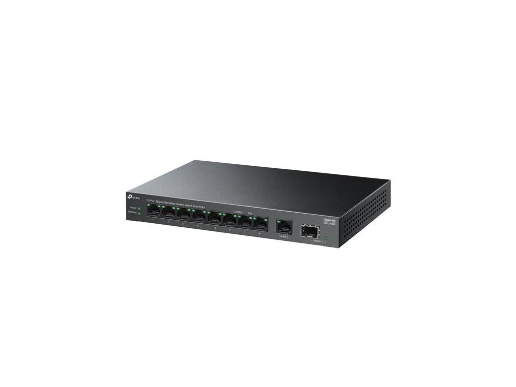 10-Port Gigabit Desktop Switch with 8-Port PoE+ PORT: 8× Gigabit PoE+ Ports, 1x Gigabit Non-PoE Port, 1× Gigabit SFP Slo