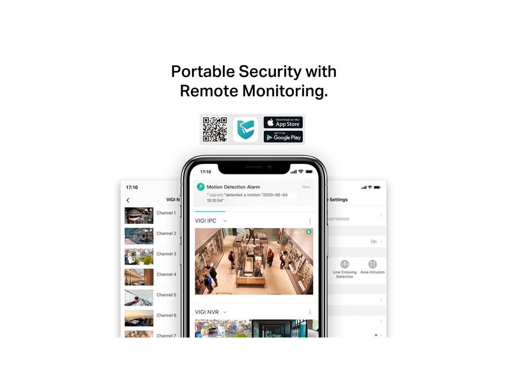 Inteligentná detekcia (detekcia pohybu, narušenie priestoru, prekročenie línie, neoprávnená manipulácia s kamerou): Prijímajte oznámenia a kontrolujte videokanály, keď niekto prekročí hranicu, vstúpi do nastavenej oblasti alebo prekáža kamere.