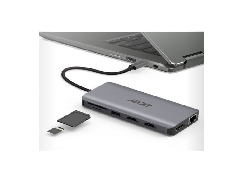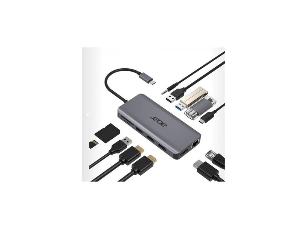 ACER 12v1 docking station/dongle USB-C: 2×USB3.2, 2×USB2.0, čtečka 1×SD/TF 2×HDMI,1×PowerDelivery,1×DP,1×RJ45,1×3.5 Audio