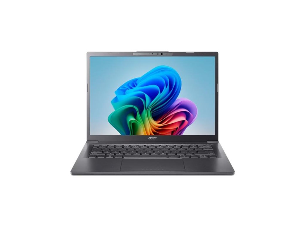 Aspire 14 AI (A14-53M-57TP) - Windows 11 Home - Intel® Core™ Ultra 5 processor 226V - NPU Intel® AI Boost up to 40 TOPS - 16 GB LPDDR5X Memory On Board + N/A - 1024GB PCIe NVMe SSD PM4 + N/A - Micro SD card reader - 14" WUXGA 1920x1200 16:10 IPS Anti-Glare 120Hz 350nits - Intel® ARC™ Graphics - Wifi 7 802.11be 2x2 MU-MIMO + BT 5.4 LE Audio - FHD IR USB TNR camera with 2Mic. with camera shutter - Backlight KB - 2x USB Type-C port supporting: USB4 ® 40Gbps / USB charging 5 V; 3 A / DC-in port 20 V; 100 W - 2x USB 3.2 Gen1 - HDMI 2.1 - Copilot Key (AI) - Acer Sense App - 65Wh Li-ion battery - 65W USB Type-C AC Adapter PCR50% TCO9.0 - Pure Silver Metal LCD + Bottom cover