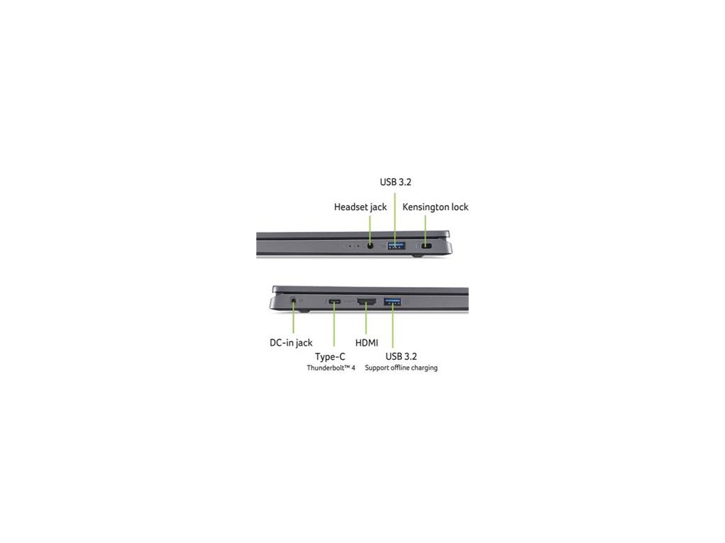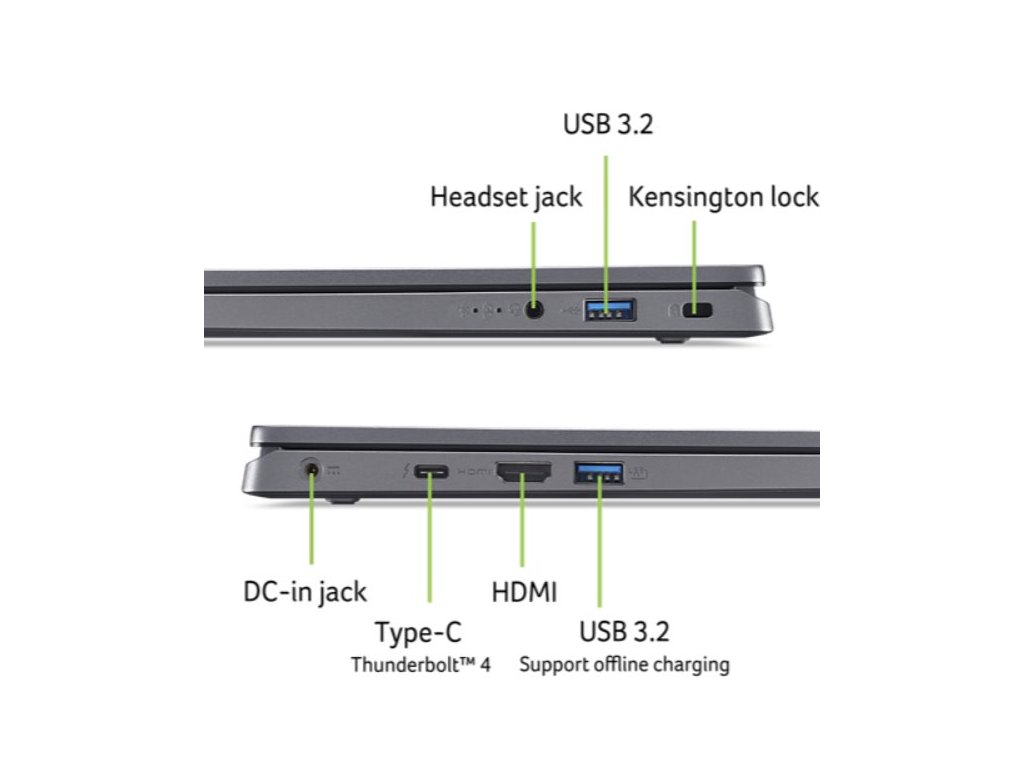 Aspire 17 (A17-51M-74PX) - Windows 11 Professional 64-bit - Intel® Core™ 7 processor 150U - 32 GB LPDDR5 Memory On Board + N/A - 1024GB PCIe NVMe SSD PM4 + N/A - 17,3" FHD 1920x1080 IPS Anti-Glare - Intel® Graphics - Wifi 6E 802.11ax 2x2 MU-MIMO + BT 5.2 - FHD USB TNR Camera with 2Mic. - Backlight KB - Finger Print on Touchpad - 2x USB 3.2 Gen1 - USB Type-C port supporting: USB4 ® 40Gbps / Display port over USB-C / Thunderbolt™ 4 / USB charging 5 V; 3 A / DC-in port 20 V; 65 W - HDMI 2.1 - Copilot Key (AI) - Acer Sense App - 50Wh Li-ion battery - 65W 3mm AC Adapter - Steel Gray 17 AL ANO BO