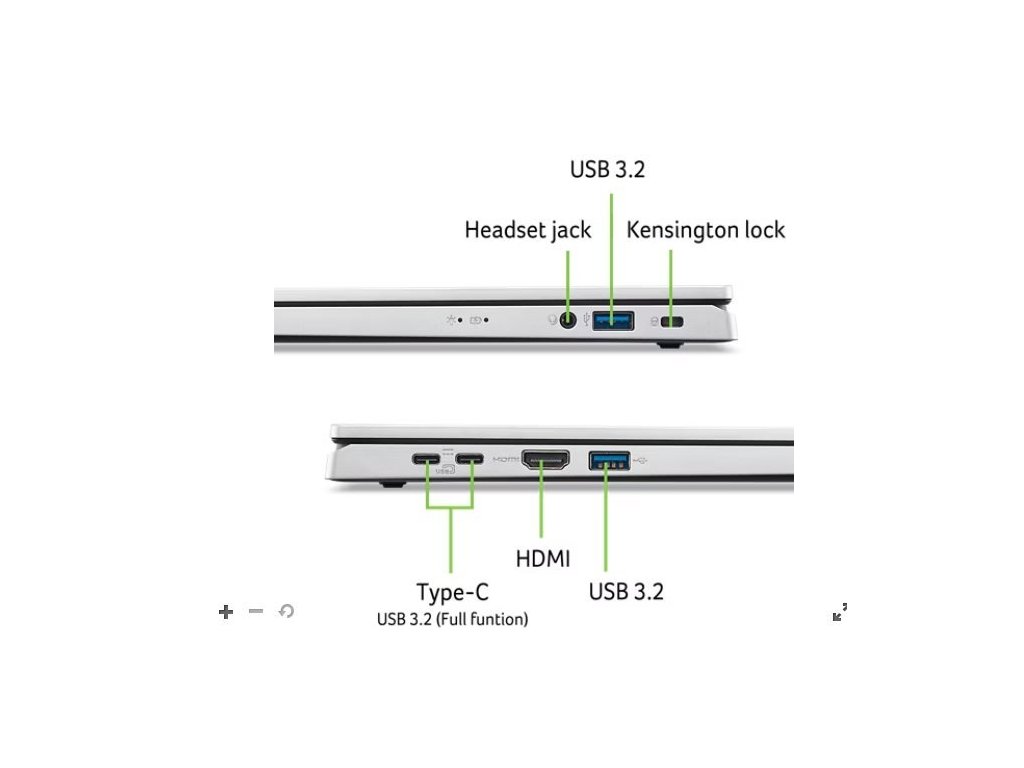Aspire Go 15 (AG15-32P-38E6) - ESHELL Linux (Boot-up only) - Intel® Core™ 3 processor N355 - 8 GB DDR5 Memory + N/A - 512GB PCIe NVMe SSD PM4 + N/A - 15,6" FHD 1920x1080 TN Anti-Glare - Intel® Graphics - Wifi 6 802.11AX + BT 5.1 - HD USB TNR Camera with 2Mic. - 2x USB Type-C™ port supporting: USB 3.2 Gen 2 (up to 10 Gbps) / DisplayPort over USB-C / USB charging 5 V; 3 A / DC-in port 19 V; 45 W - 2x USB 3.2 Gen1 - HDMI 2.1 - 53Wh Li-ion battery - 65W USB Type-C AC Adapter PCR50% TCO9.0 - Pure Silver