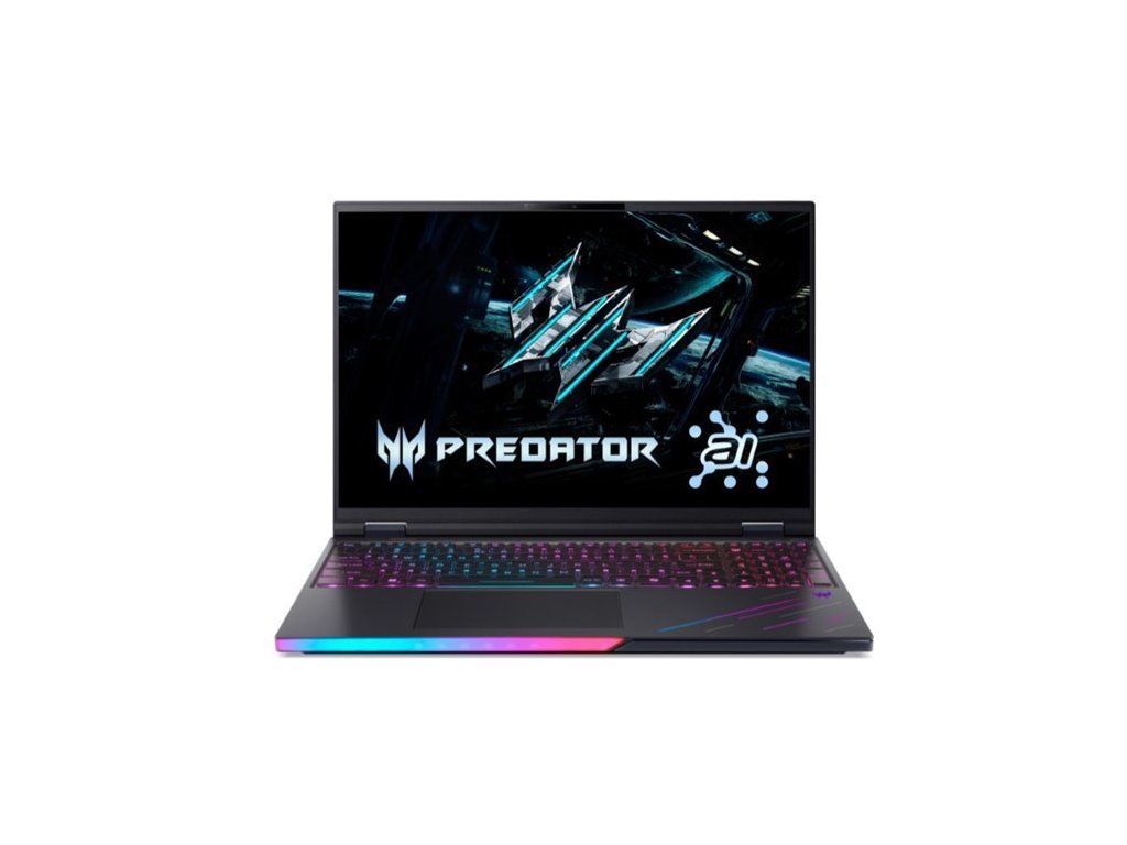 Predator Helios Neo 16 AI (PHN16-73-94RV) - ESHELL Linux (Boot-up only) - Intel® Core™ Ultra 9 processor 275HX - NPU Intel® AI Boost up to 13 TOPS - 16 GB DDR5 6400MHz Memory + 16 GB DDR5 6400MHz Memory - 1024GB PCIe NVMe SED SSD PMP4 + N (M.2 SSD) - Micro SD card reader - 16" WQXGA 2560x1600 16:10 IPS Anti-Glare 240Hz DCI-P3 100% 500nits Support DDS - NVIDIA® GeForce RTX™ 5070 8G-GDDR7 (4C*512*8*4) 28Gbps 115W MGP, Advanced Optimus - Wifi 6E 802.11ax 2x2 MU-MIMO Killer 1675i + BT 5.4 LE Audio - FHD IR USB TNR Camera with 2Mic. - 4-zone RGB Backlight KB + cover Logo illumination - 1x USB Type-C port supporting: USB 3.2 Gen 2 (up to 10 Gbps) / DisplayPort over USB-C / Thunderbolt™ 4 / USB charging 5 V; 3 A / DC-in port 20 V; 90/100 W - 1x USB Type-C port supporting: USB 3.2 Gen 2 (up to 10 Gbps) / DisplayPort over USB-C / USB charging 5 V; 3 A / DC-in port 20 V; 90 W - 2x USB 3.2 Gen2 - 1x USB 3.2 Gen1 - HDMI 2.1 - RJ-45 - 5th Gen AeroBlade™ 3D fan + liquid metal thermal grease - DTS® X:Ultra Audio - 90Wh Li-ion battery - 230W 5.5mm AC Adapter PCR50% - Abyssal black + Black Aluminium LCD cover