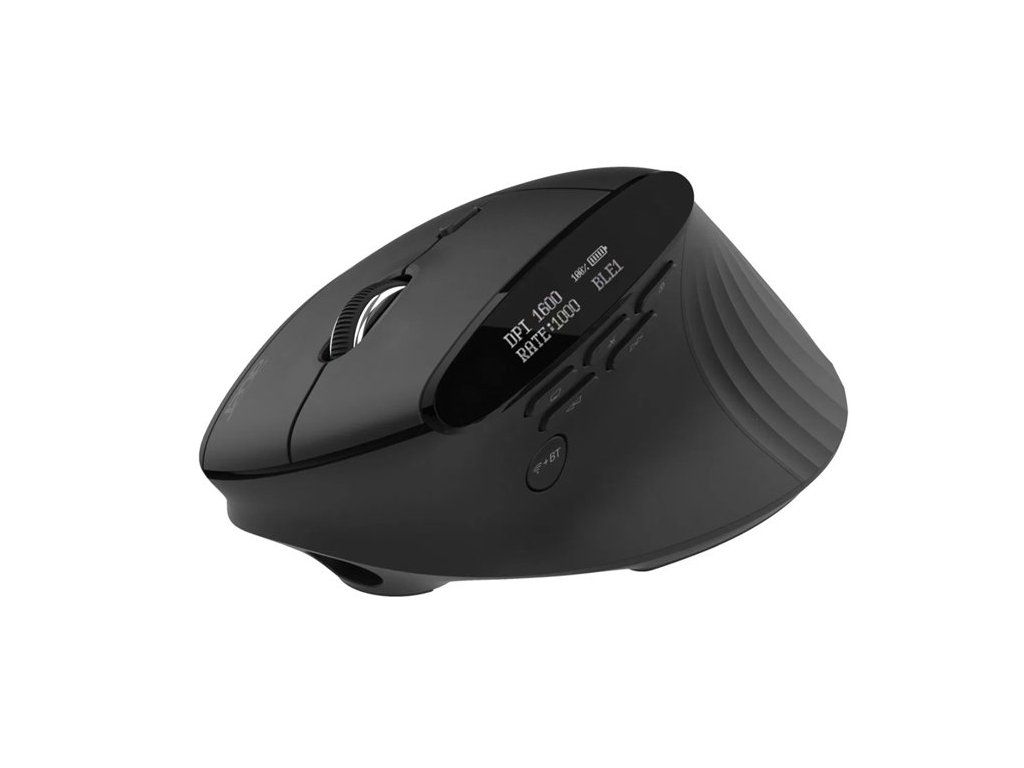 Acer Smart Fit Vertical Mouse - Black, Wireless RF 2.4GHz + BT (2x) + USB, vertikální (pro praváky), citlivost 8000 DPI