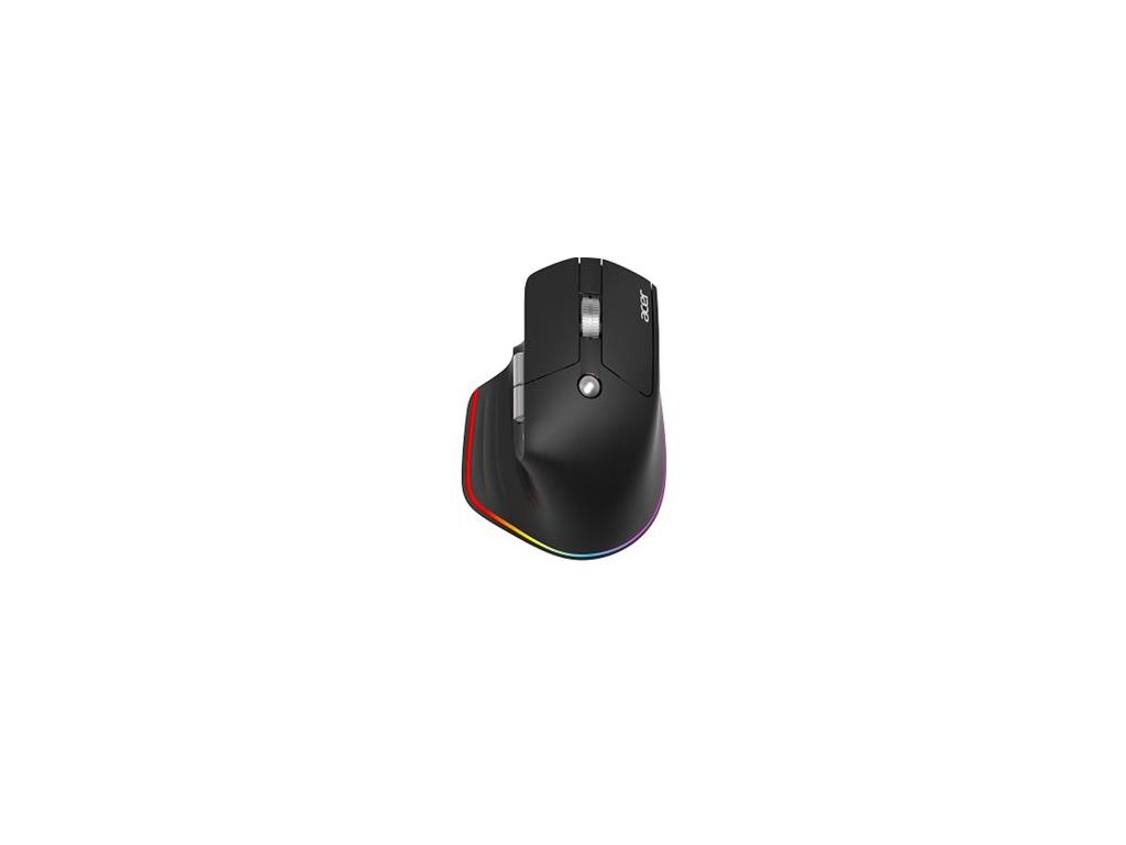 Acer Smart Fit Vertical Mouse - Black, Wireless RF 2.4GHz + BT (2x) + USB, vertikální (pro praváky), citlivost 8000 DPI (5 stupňů 1600-8000), 10 tlačítek, RGB podsvícení (11 módů), dosah 10 m, USB-C nabíjení, Li-ion baterie 850mAh, výdrž až 120 hodin, nabíjecí čas 2,5 hodiny, rozměry 118 x 79 x 59 mm, 115 g, Win/macOS/Chrome OS, retail pack