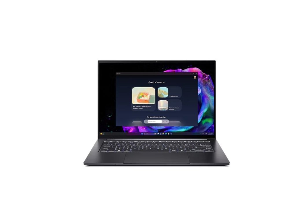Swift X 14 (SFX14-73G-990T) - Windows 11 Home - Intel® Core™ Ultra 9 processor 285H - NPU Intel® AI Boost up to 13 TOPS - 32 GB LPDDR5X Memory On Board + N/A - 1024GB PCIe NVMe SSD PM4 + N (M.2) - Micro SD card reader - 14,5" WQXGA+ 2880x1800 16:10 OLED Glare Touch with Glass 120Hz DCI-P3 100%/Adobe100% 1,000,000:1 340nits Support HDR True black 500, TÜV Low blue/Eyesafe - NVIDIA® GeForce RTX™ 5070 8G-GDDR7 (4C*512*8*4) 28Gbps - Wifi 6E Intel 802.11ax 2x2 1675i CNVi + BT 5.3 & LE Audio - FHD IR USB TNR camera with 2Mic.- Backlight KB - 2x USB Type-C™ port supporting: USB4® 40Gbps / DisplayPort over USB-C via iGPU / USB charging 5 V; 3 A / DC-in port 20 V; 65 or 100 W - 2x USB 3.2 Gen2 - HDMI 2.1 - Corning® Gorilla® Glass haptic Touchpad with Active Stylus Pen AM2.0SD2PT (jen pro Touchpad) - Copilot Key (AI) - Acer Sense App - 76Wh Li-ion battery - 100W USB Type-C AC Adapter PCR50% TCO9.0 - Titanium Gray Full Aluminium