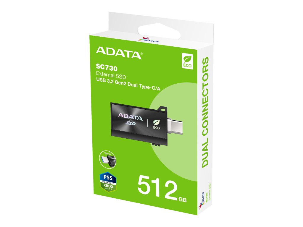 SC730 je maličký a lehoučký externí SSD disk s dvěma konektory, s kompaktním designem podobným USB flash disku. S rychlostí čtení/zápisu až 600 MB/s, což usnadňuje rozšíření úložiště v mobilních zařízeních. Model SC730 je také vyroben z 50 % z recyklovaného plastu a nabízí jednoduchý a ekologický design, což z něj činí ideální volbu pro mobilní úložiště.