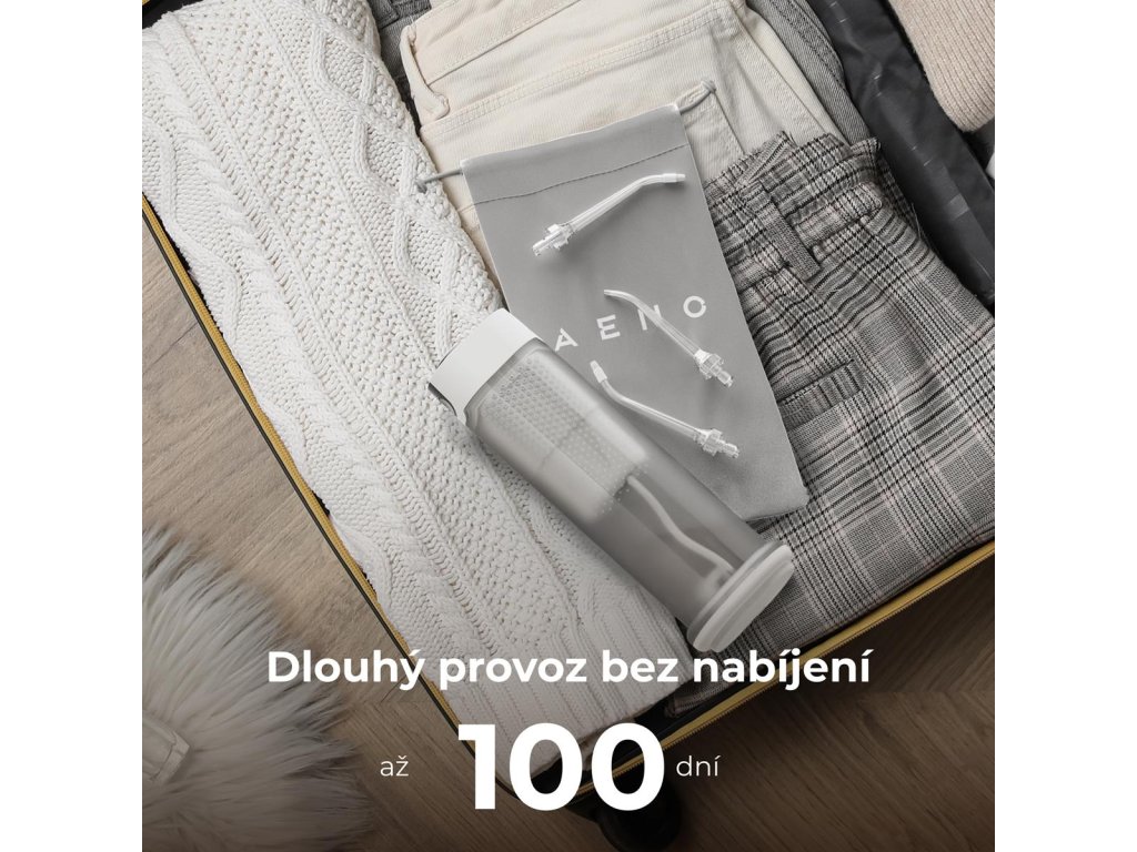 Díky výdrži baterie až 100 dní bude AENO DI3 spolehlivým pomocníkem v péči o ústní dutinu i na cestách