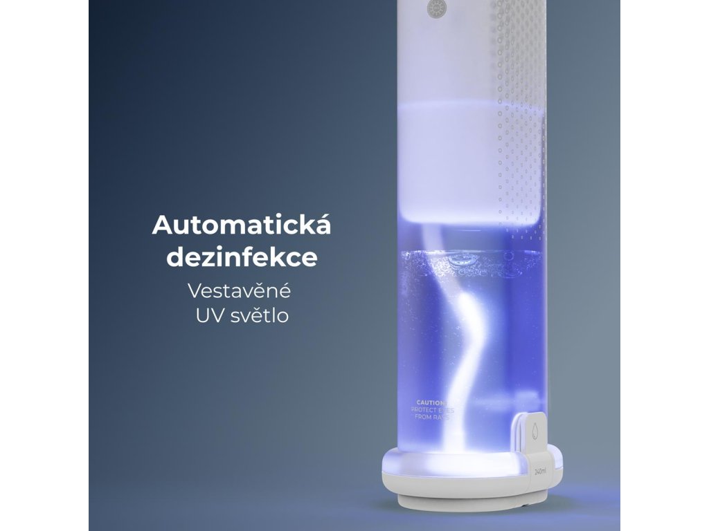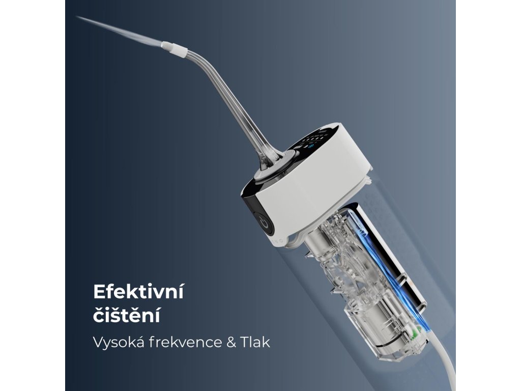 Hygienu zvyšuje vestavěné UV světlo, které automaticky dezinfikuje trysky po použití. Tato špičková funkce zajišťuje, že vaše ústní sprcha zůstane vždy čistá a připravená pro další použití.