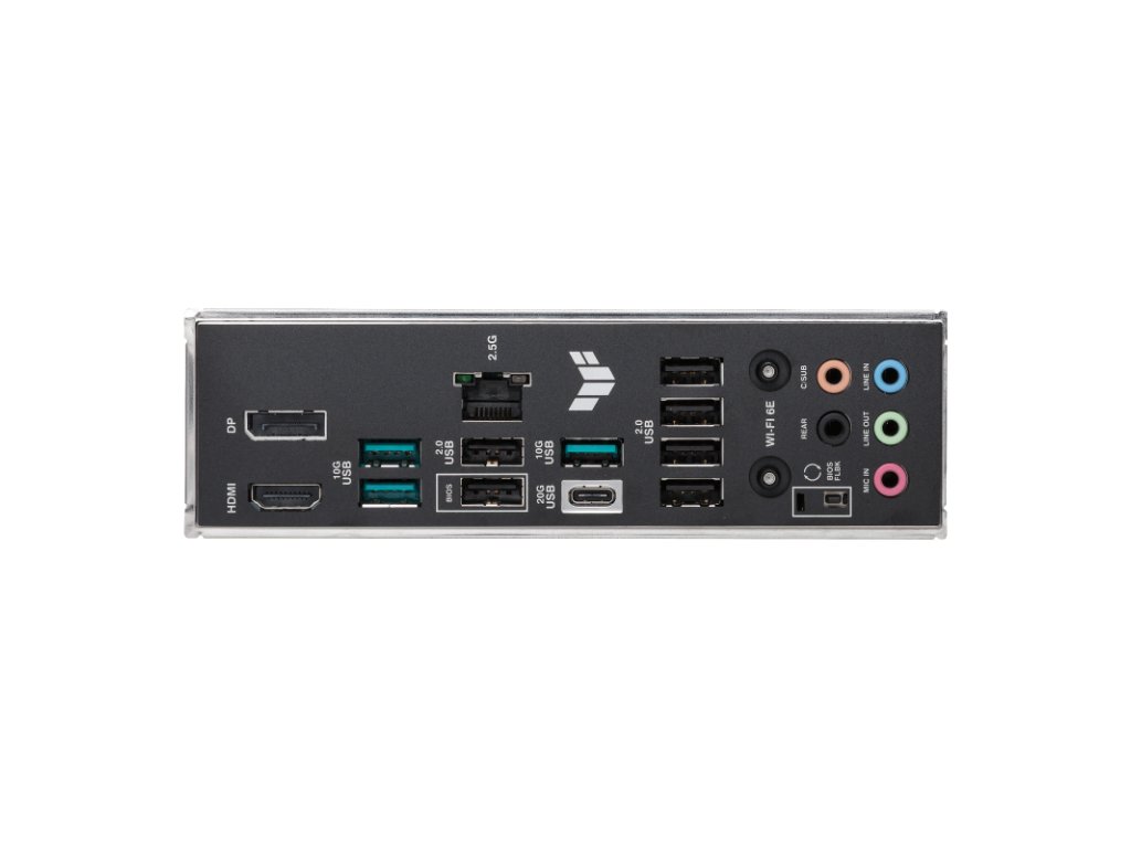 1 x USB 20Gbps port (1 x USB Type-C®) 3 x USB 10Gbps porty (3 x Type-A) 6 x USB 2.0 porty (6 x Type-A) 1 x DisplayPort 1 x HDMI™ port 1 x Wi-Fi modul 1 x Realtek 2.5Gb Ethernet port 5 x audio konektory 1 x tlačítko BIOS FlashBack