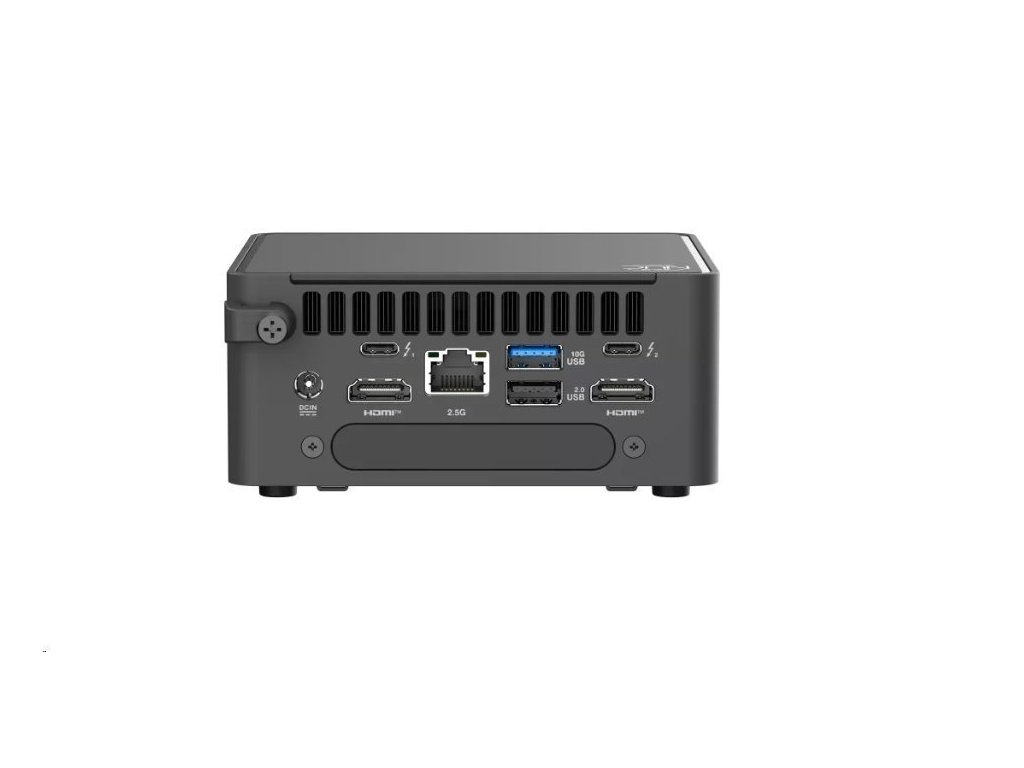 2 x Thunderbolt 4 Type-C Ports 1 x USB 3.2 Gen 2 Type-A 1 x 2.0 Type-A 2 x HDMI 2.1 (TMDS) ports 1 x RJ45 LAN Port 1 x DC-in Power supply: 90W/19VDC Počet podporovaných displejů: 4x 4K Typ skříně: UCFF Typ produktu: Mini barebone PC Barva: Černá Rozměry: 117 x 112 x 54 mm OS Support: Microsoft Windows 11 Pro Ubuntu 24.04 LTS 64-bit RedHat Enterprise Linux 64-bi Příslušenství: AC Adapter VESA Bracket and Screws Cable Clip Safety/Caution/Regulatory Insert Warranty Card