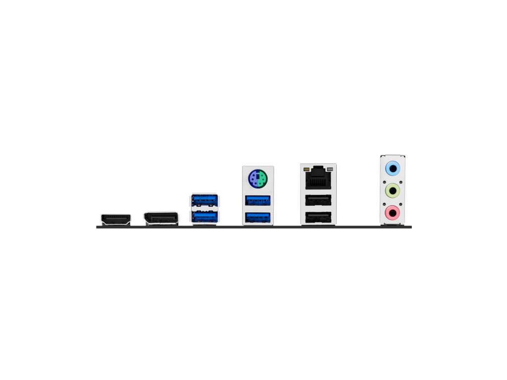 4 x USB 5Gbps ports (4 x Type-A) 2 x USB 2.0 ports (2 x Type-A) 1 x DisplayPort 1 x HDMI™ port 1 x Realtek 1Gb Ethernet port 3 x Audio jacks 1 x PS/2 keyboard/mouse combo port