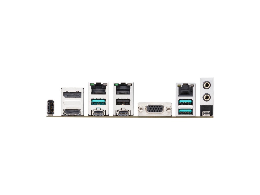 3 x USB 10Gbps port(s) (3 x Type-A ) 1 x USB 10Gbps port(s) (USB Type-C®) 1 x USB 10Gbps port(s) (USB Type-C®) podporuje DisplayPort video output 2 x USB 2.0 port(s) (2 x Type-A) 1 x DisplayPort 1 x VGA port 1 x HDMI™ port 1 x Realtek 10Gb Ethernet port 1 x Intel® 2.5Gb Ethernet ports 1 x Realtek 1Gb Ethernet 2 x Audio jack 1 x Clear CMOS tlačítko