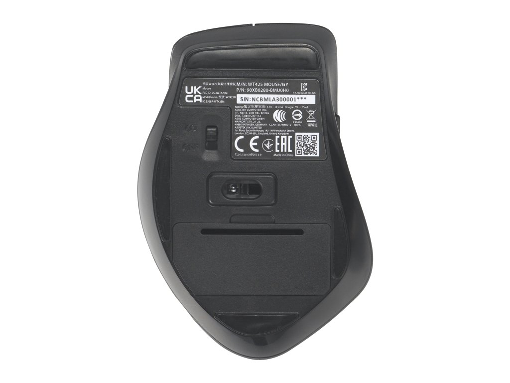 ASUS WT425/Ergonomická/Optická/Pro praváky/1 600 DPI/Bezdrátové USB/Šedá
