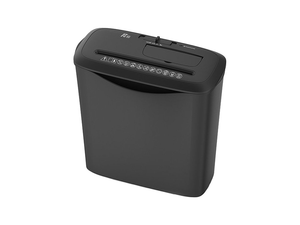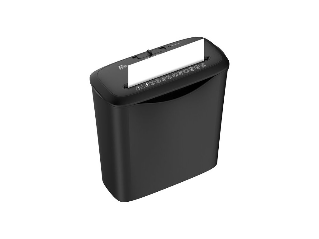 Skartovačka AT AT-6S pro použití v domácnosti nebo osobní kanceláři. Je vhodná pro skartaci papíru, sponek, DVD, CD a rozmanitých dokumentů, které jsou již nepotřebné nebo natolik citlivé a neměly by se dostat do nepravých rukou. Skartovací stroj je vybaven ochranou proti přetížení a přehřátí, což podporuje stabilní provoz a dlouhou životnost. Kompaktní design je vhodný pro umístění v domácí kanceláři. Nepřetržitá doba provozu až 3 minuty je ideální pro běžnou skartaci dokumentů. V případě překročení časového limitu a rizika přetížení/přehřátí vás informuje světelný indikátor a následně dojde k automatickému vypnutí.