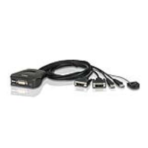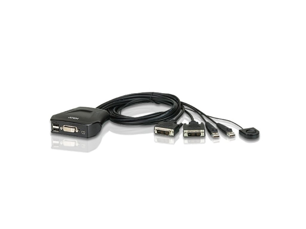 ATEN 2-port DVI KVM USB mini, integrované kabely, tlačítko pro přepínání