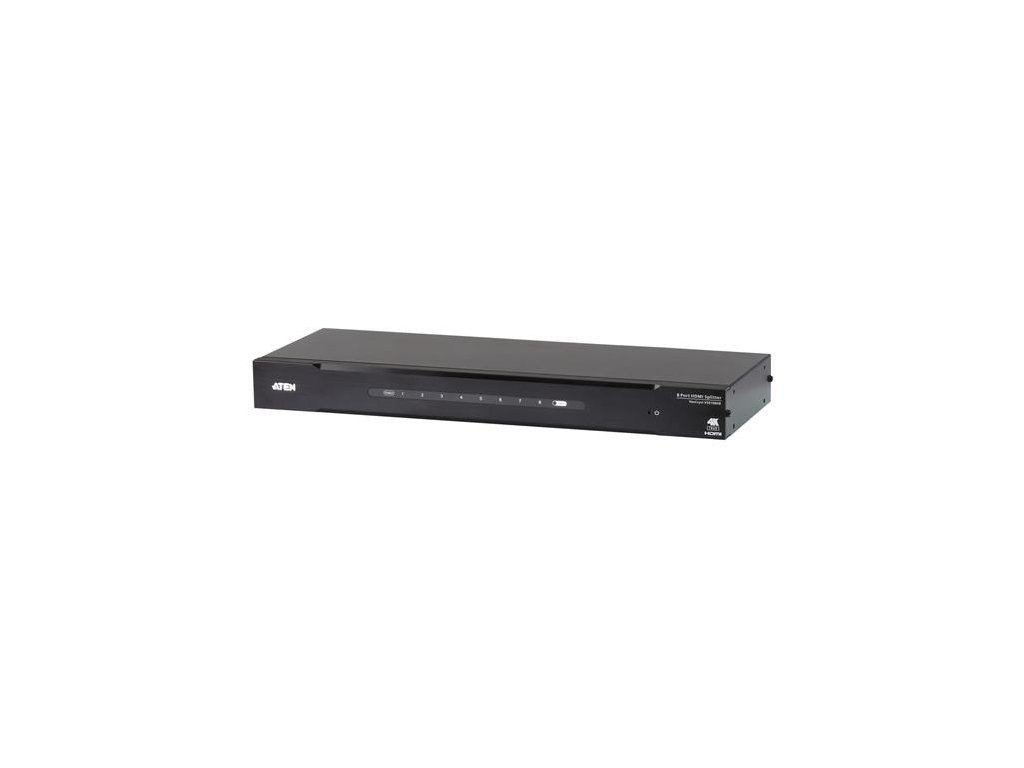 ATEN VS0108HB je určen pro aplikace, které vyžadují směrování jednoho zdroje HDMI na 8 kompatibilních zobrazovacích zařízení. Podporuje Dolby True HD a DTS HD Master Audio, video signály až do rozlišení True 4K, přenosové rychlosti až 18 Gb/s, 3D a bezeztrátové formáty HD zvuku. Díky technologii ATEN EDID zaručuje model VS0108HB nepřetržitou komunikaci EDID s připojenými zařízeními a zajišťuje správné zapnutí zdrojů HDMI a zachování správných obrazových výstupů.