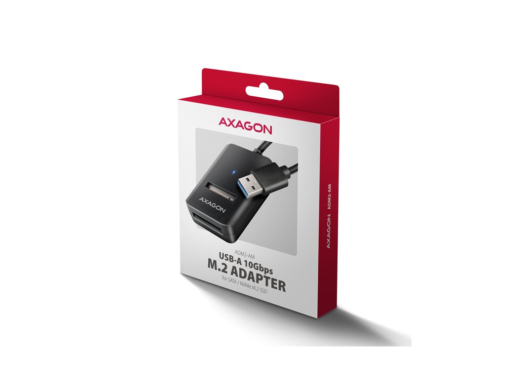 AXAGON ADM2-AM USB-A 10Gbps - M.2 NVMe & SATA SSD adaptér, kabel USB-A 10cm