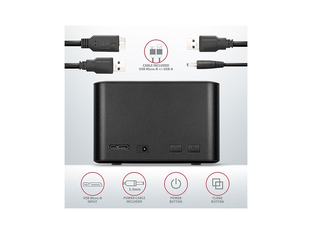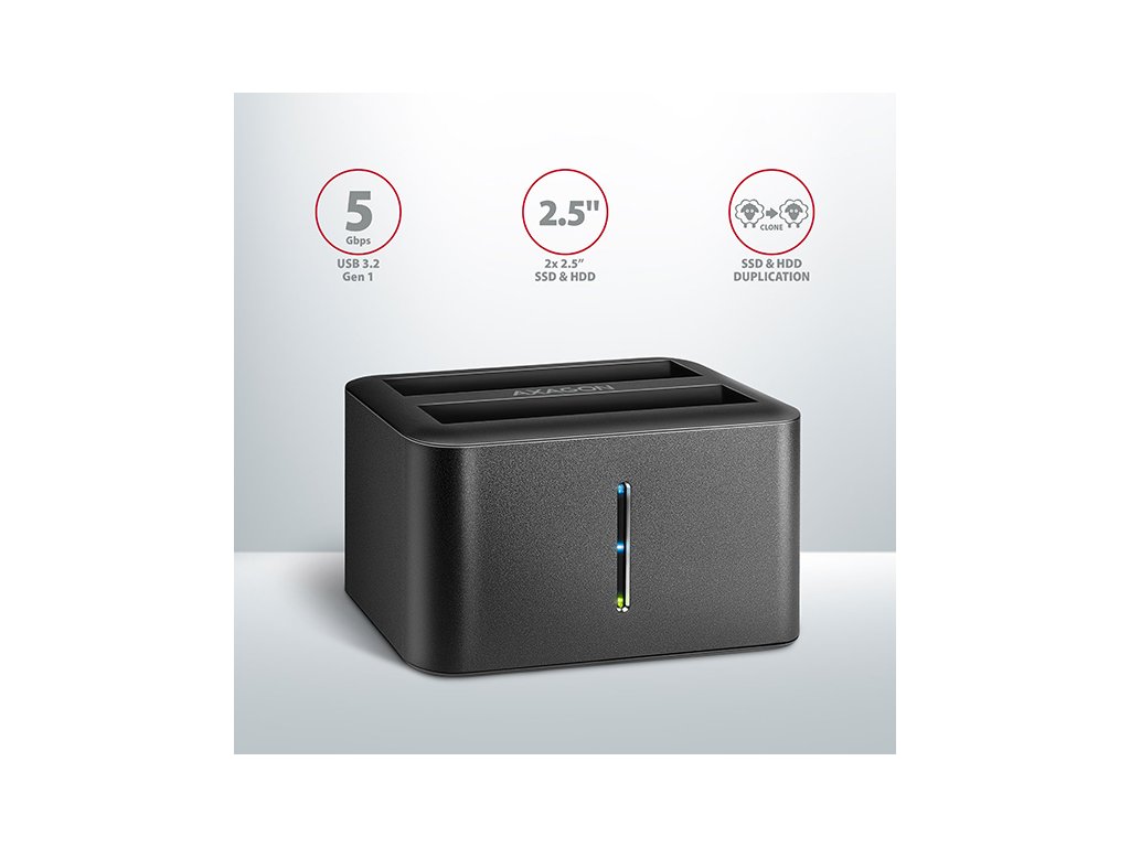 AXAGON ADSA-D25, USB 3.2 Gen 1 - 2x SATA 6G 2.5'' SSD/HDD CLONE MINI dokovací stanice