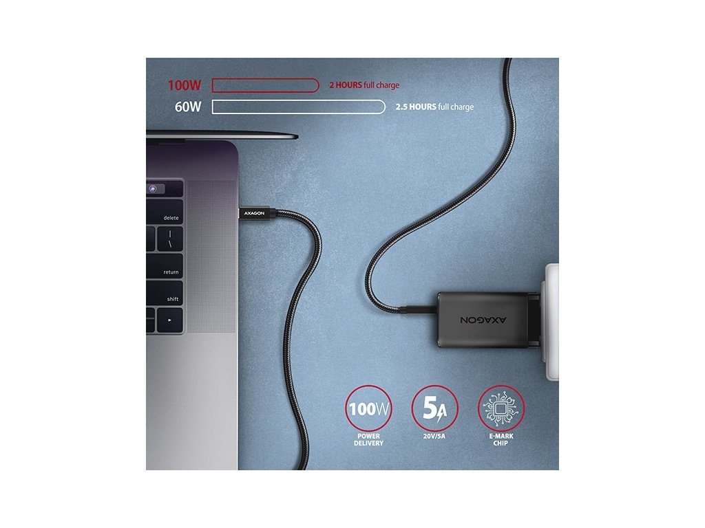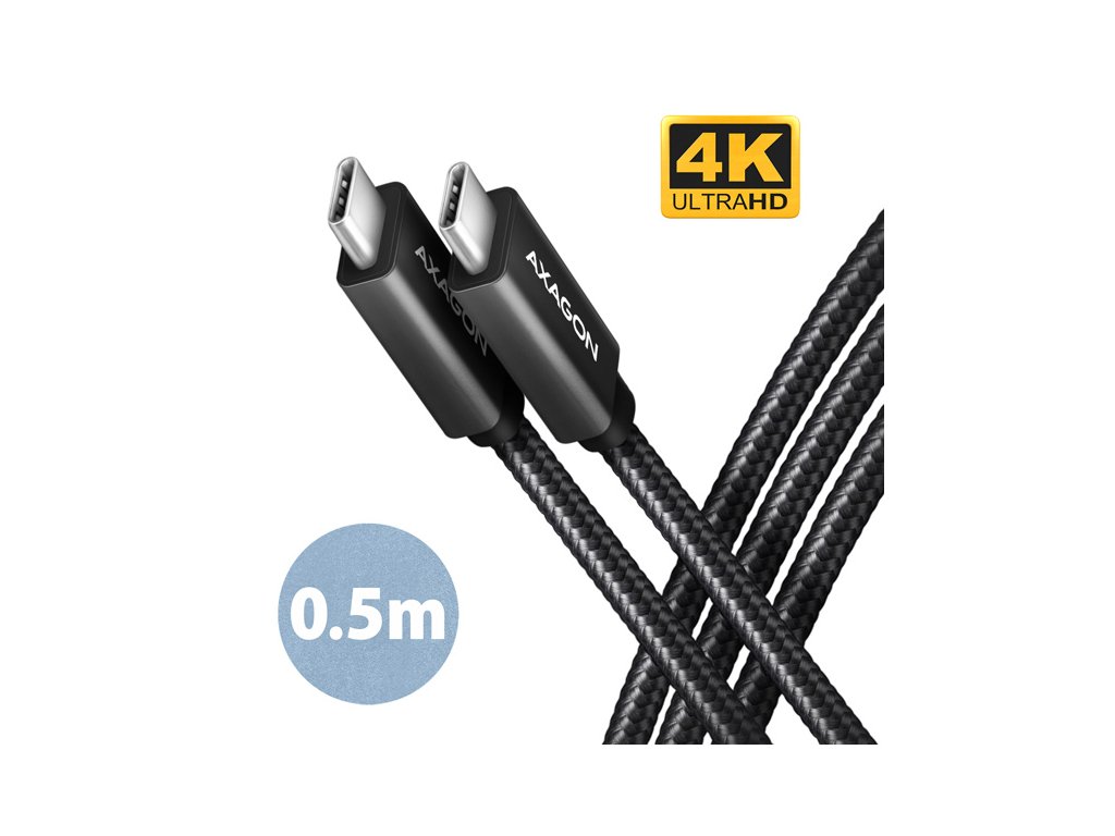 AXAGON BUCM32-CM05AB, SPEED+ kabel USB-C <-> USB-C, 0.5m, USB 20Gbps, PD 100W 5A, 4K HD, ALU, oplet