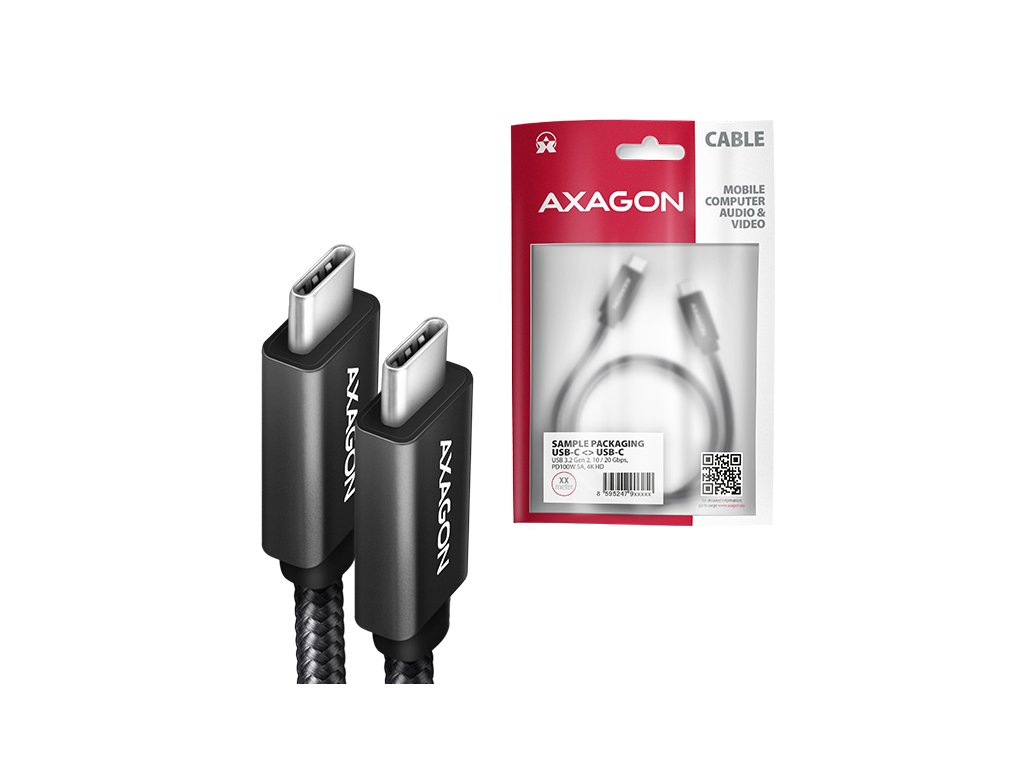 s konektory USB-C male na obou koncích. Kabel je navržen pro velmi rychlé datové přenosy, přenos videa a nabíjení notebooků, telefonů, tabletů a dalších mobilních zařízení výkonem až 100 W. Umožňuje také připojení monitorů, dokovacích stanic a externích SSD disků. Kabel je navržen pro přenos dat s maximální