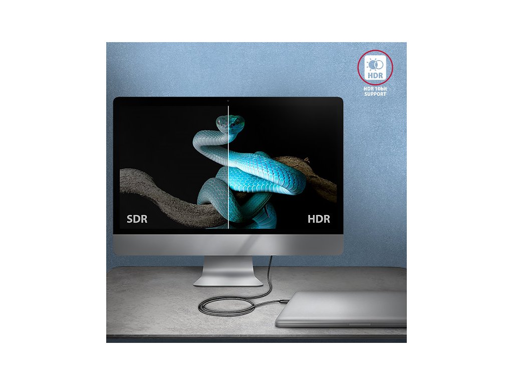 . Je navržen pro nejrychlejší datové přenosy, přenos videa a nabíjení notebooků, telefonů, tabletů. Umožňuje připojení monitorů, dokovacích stanic a externích SSD disků. Kabel podporuje přenos dat
