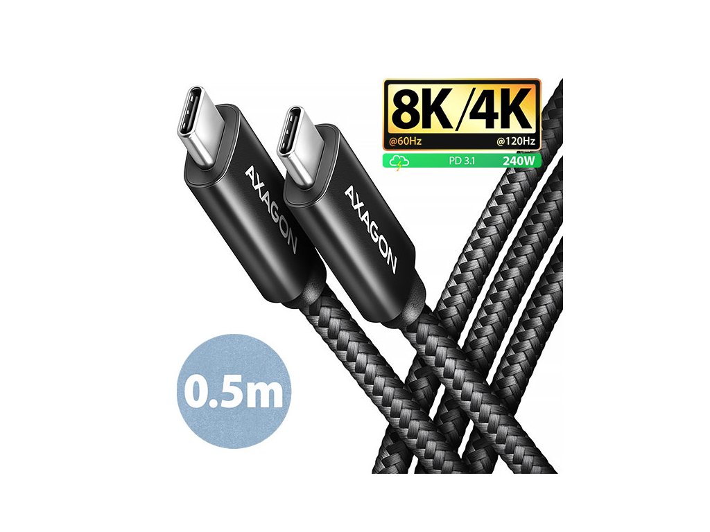 AXAGON BUCM4X-CM05AB NewGEN+ kabel USB-C <-> USB-C, 0.5m, USB4 Gen 3×2, PD 240W 5A, 8K HD, ALU,oplet