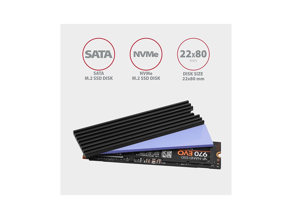 . Prodlužuje se tak životnost M.2 SSD disku a zamezí se zpomalování rychlosti disku tzv. „Thermal Throttling“. Díky snadné montáži a kompaktním rozměrům lze chladič použít nejen s M.2 adaptéry AXAGON, ale také s M.2 (NGFF) sloty na základních deskách apod.