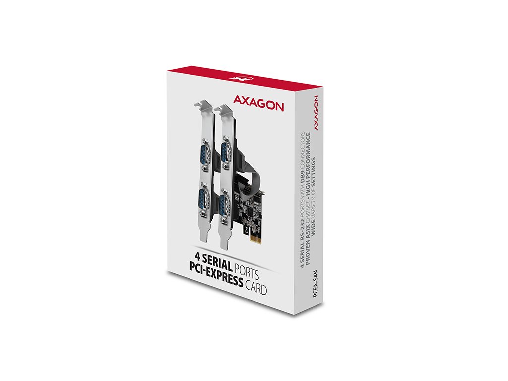 AXAGON PCEA-S4N, PCIe řadič - 4x sériový port (RS232) 250 kbps, vč. LP