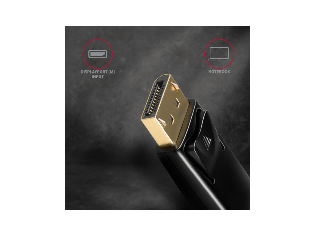 • DisplayPort v1.2 • konektor DP se západkou (M) male (samec) • tlačítko ovládání západky konektoru