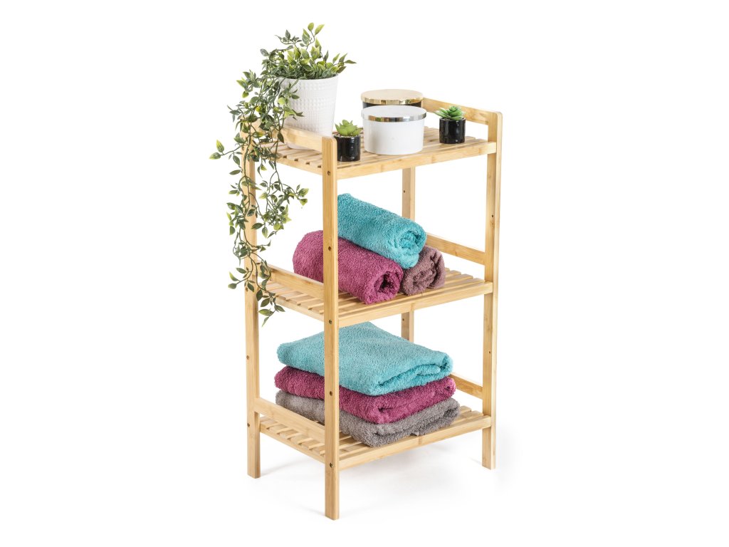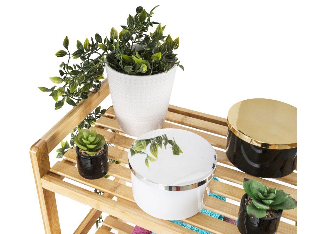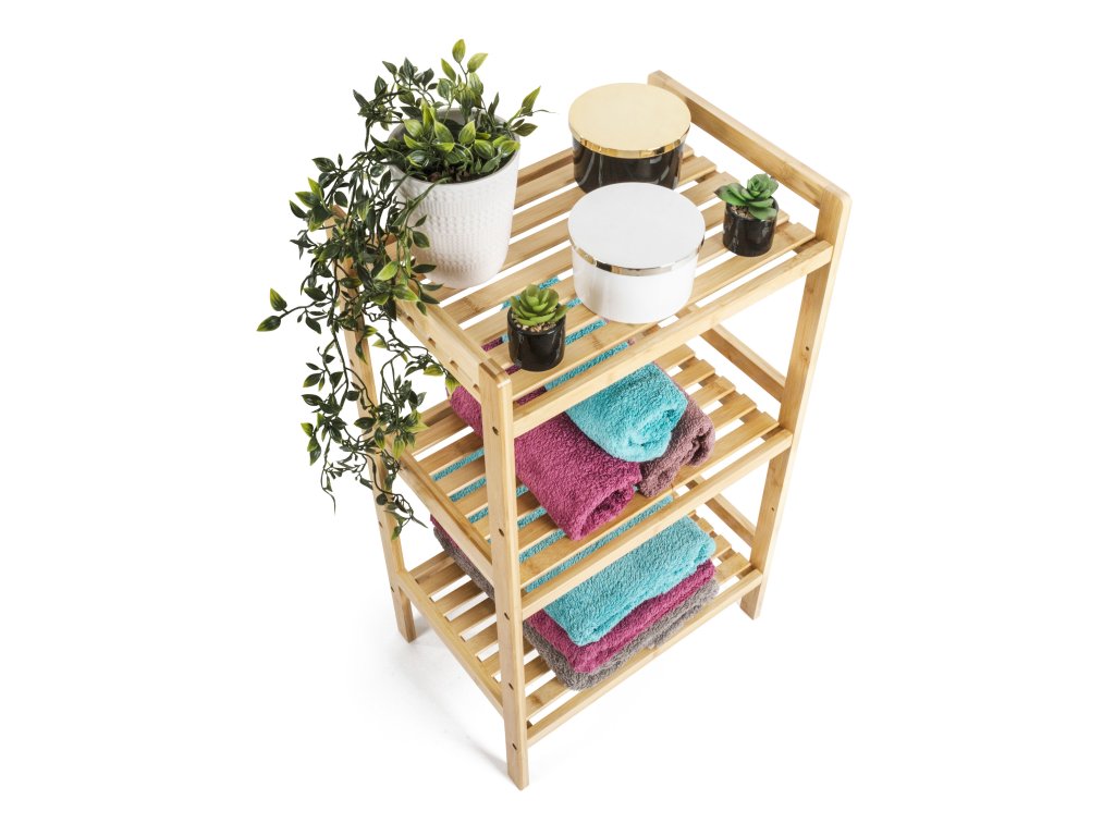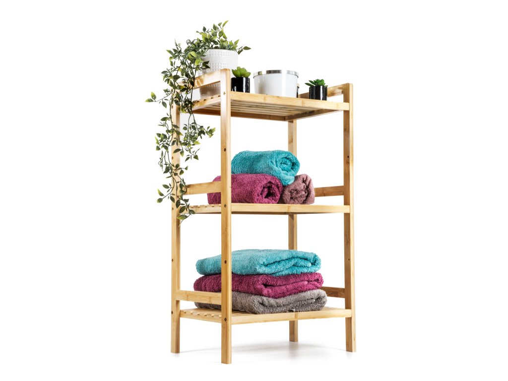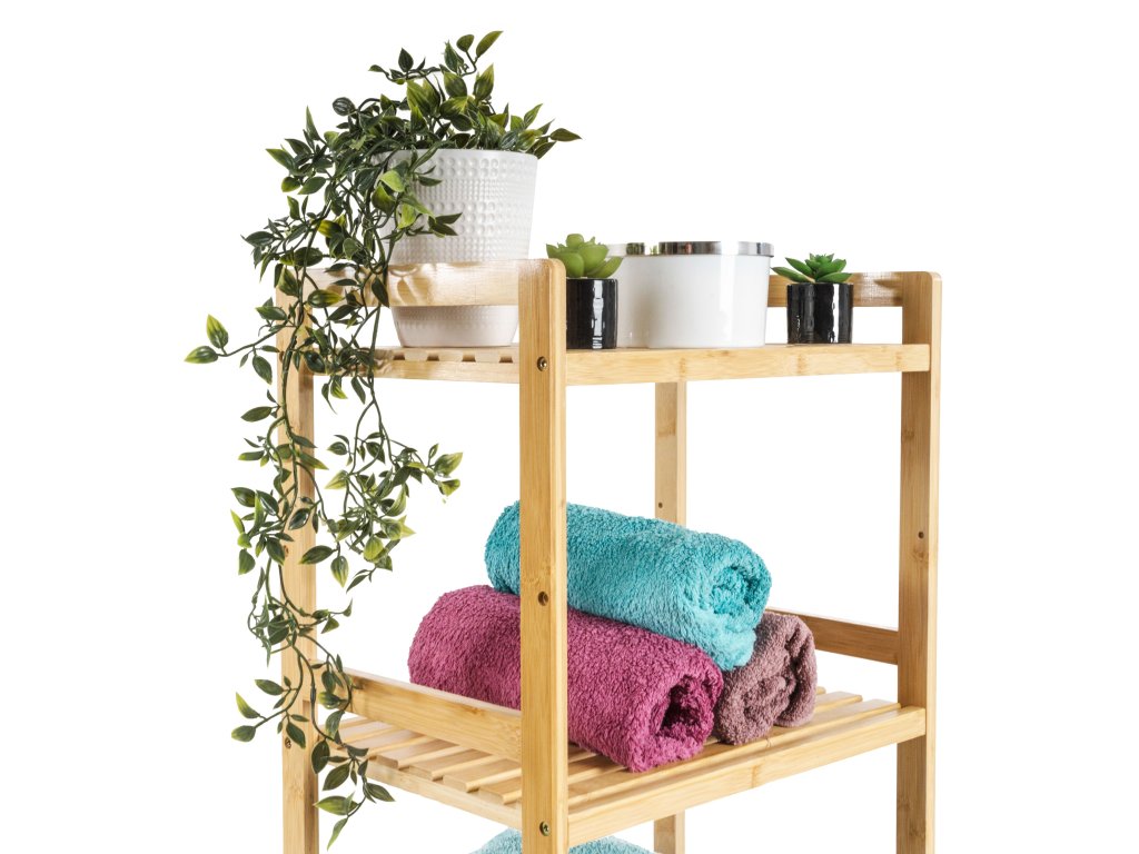 Bambus je překvapivě lehký, takže s celým stojanem s policemi můžete snadno manipulovat. Zároveň je ale dostatečně pevný, takže unese i větší zátěž. Jednou z výborných vlastností bambusového dřeva je navíc jeho velká odolnost vůči vlhkosti a přirozená odolnost vůči bakteriím a plísním, takže se nemusíte obávat jeho umístění v koupelně nebo prádelně.