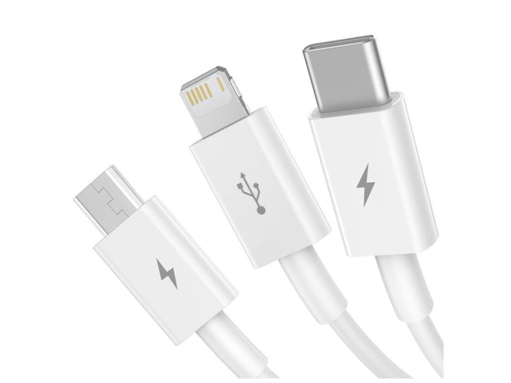 Baseus CAMLTYS-02 Superior Fast Charging Datový Kabel 3v1 USB-C, Lightning, MicroUSB 1.5m White