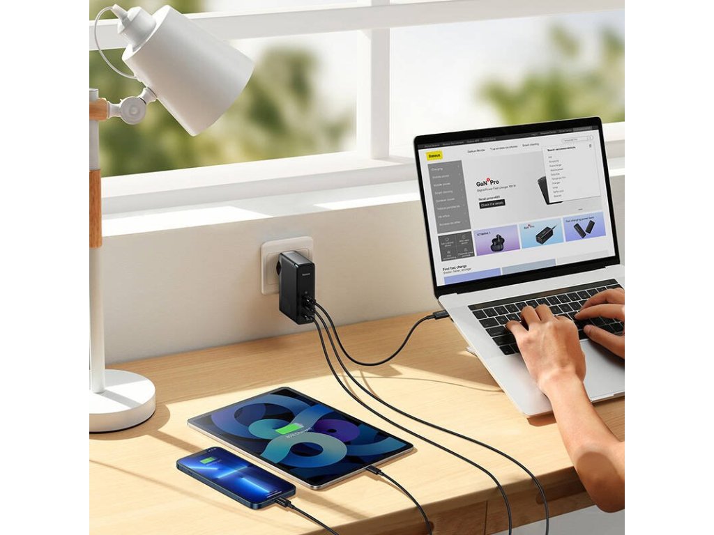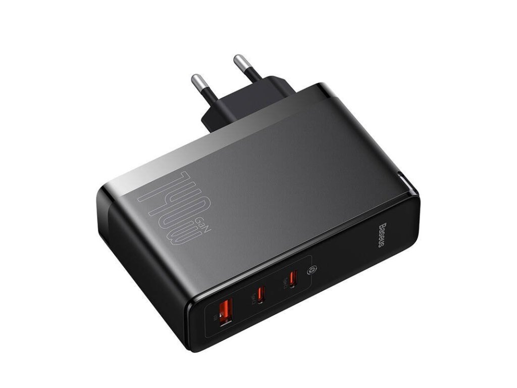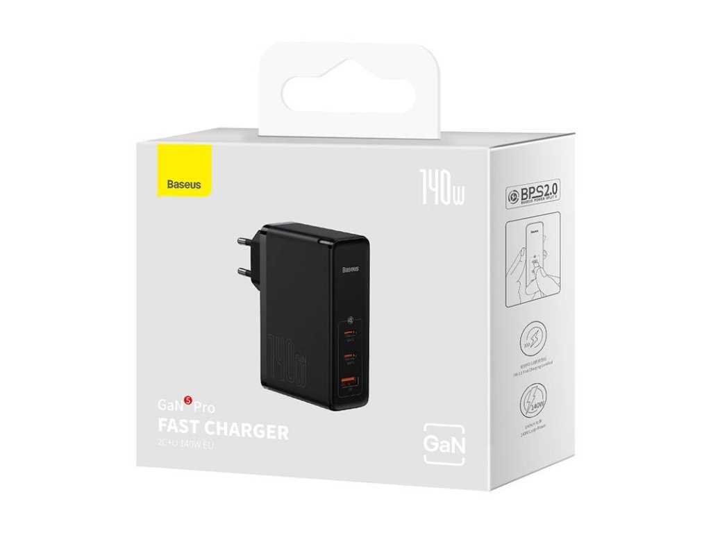 Popis produktu: Baseus GaN5 Pro Wall Charger 2xUSB-C + USB 140W EU Black - velmi výkonná sítová nabíjecka s výkonem až 140W pri zachování velmi kompaktních rozmeru. Je vybavena konektory 2x USB-C a 1x USB-A, podporuje nabíjecí protokoly USB Power Delivery 3.1, Quick Charge i PPS. Ideální pro moderní výkonné notebooky, tablety, smartphony a další. Díky technologii GaN je menší o 25% a lehcí o 30% než standardní 140W adaptér od Applu, který má jen jeden konektor.
