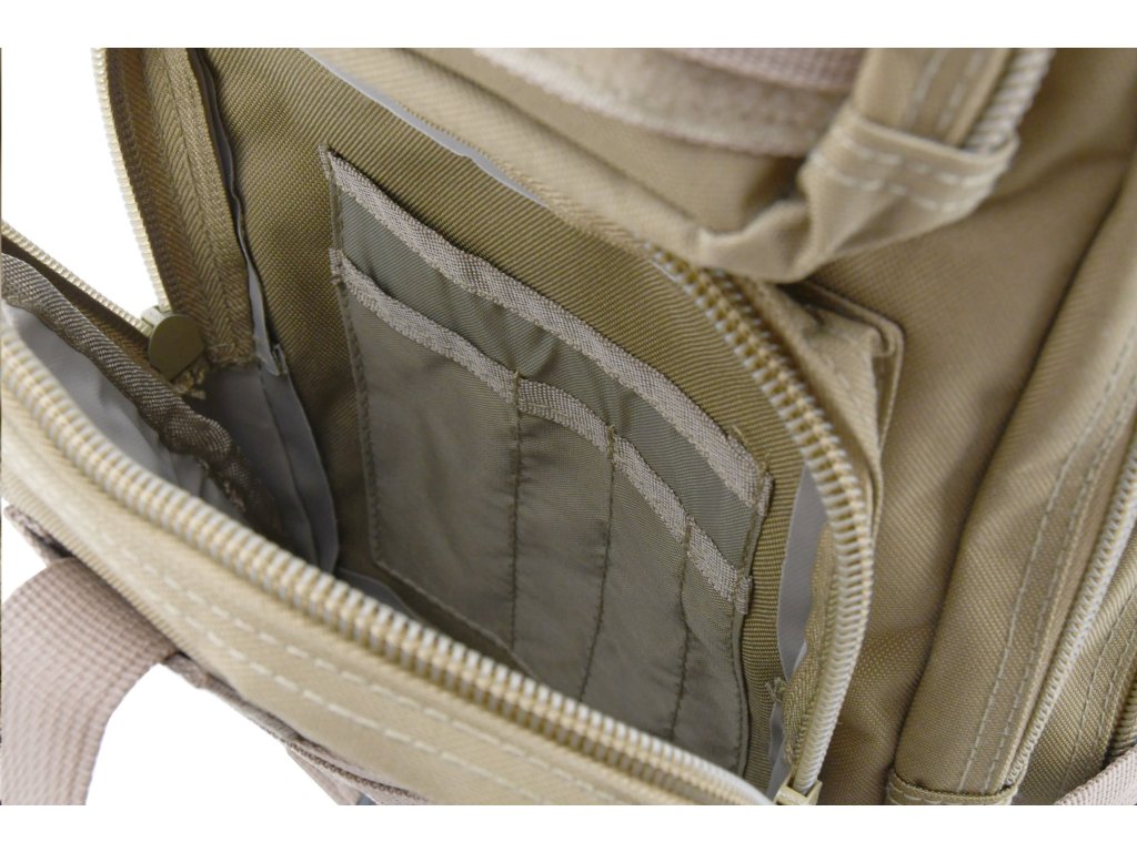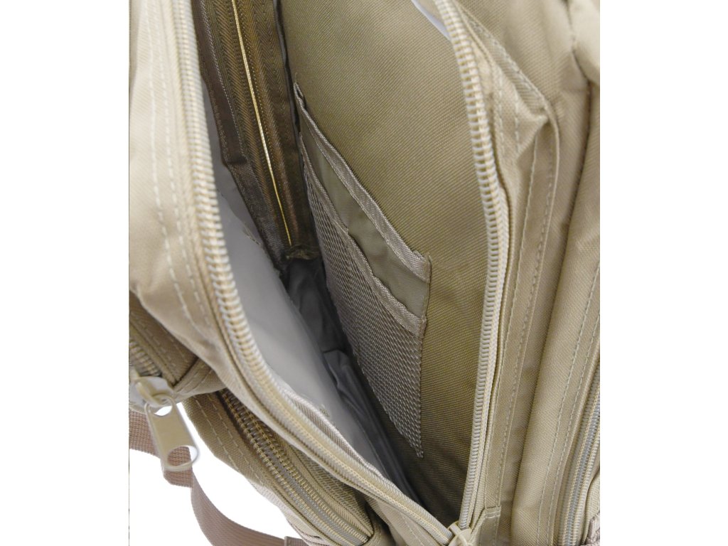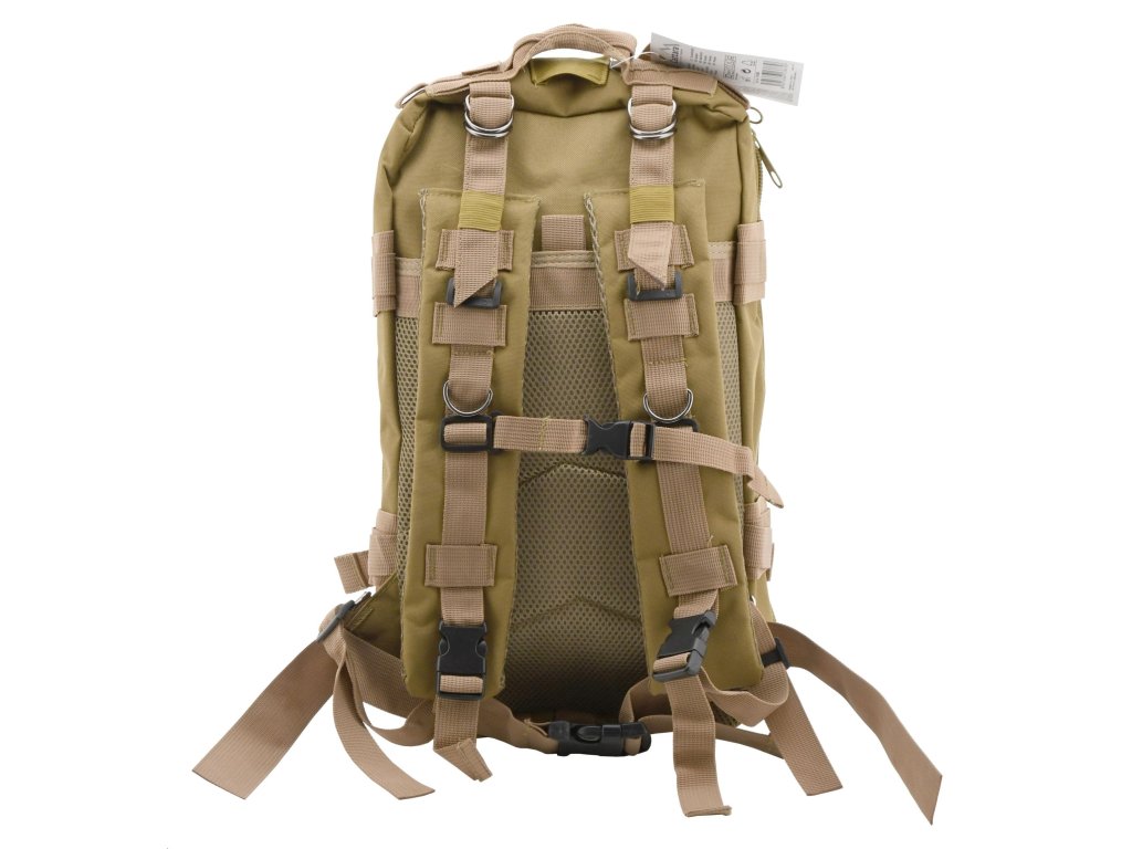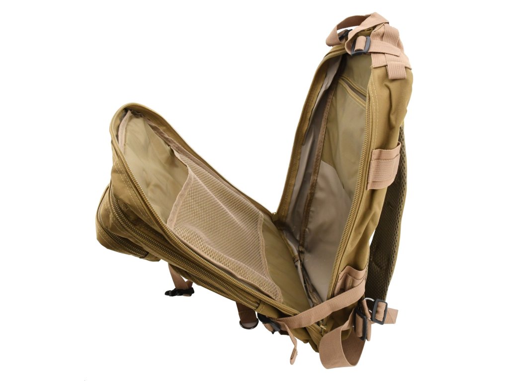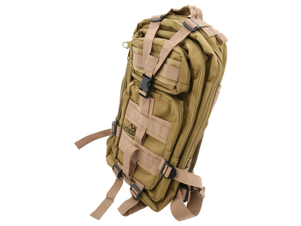 Batoh Cattara ARMY 30 l je skvělou volbou pro uložení veškerého vybavení, které je potřebné na cesty. Tento objemný polstrovaný batoh na záda ze 100% polyesteru s voděodolnou PVC vrstvou z vnitřní strany je opatřený 2 hlavními, 2 vedlejšími, 4 vnitřními kapsami a 1 zadní prodyšnou kapsou. Z čelní strany a na bocích naleznete Molle systém pro uchycení dalšího vybavení. Kapsy jsou osazeny bytelným 2cestným zipem. Jedna z vnitřních kapes však má klasický zip a zadní větraná kapsa má zase suchý zip. Vnitřní kapsy a sítěná kapsa jsou doplněné o poutka pro bezpečné nošení drobných předmětů.