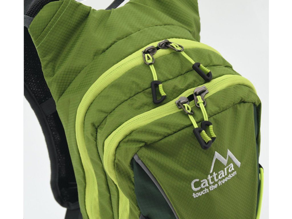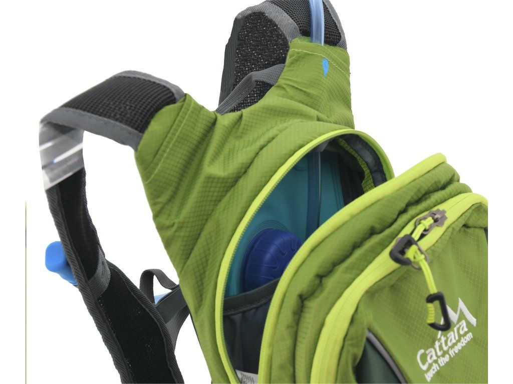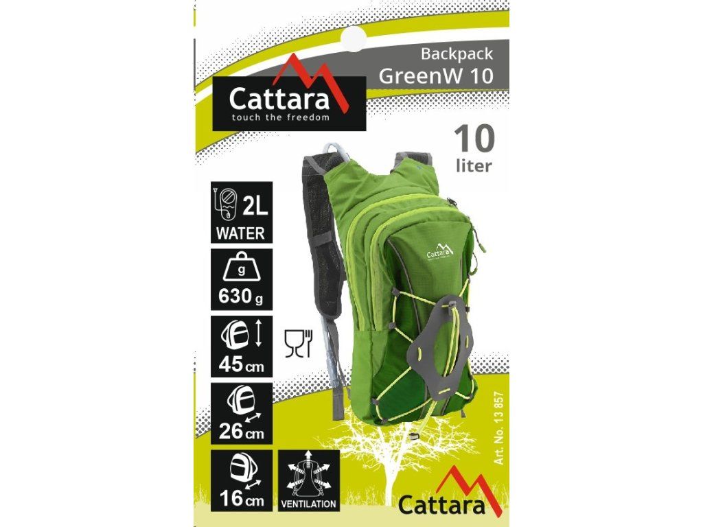 Máte rádi outdoor, výlety po horách i po lesích? Jste vášnivý cyklista a potřebujete batoh, který s vámi zvládne všechny túry a výzvy? Zelený batoh Cattara GreenW o objemu 10 l s integrovaným 2l pitným vakem se pohodlně nosí díky měkkým výztužím a prodyšné zádové části, která zajistí příjemnou cirkulaci vzduchu.