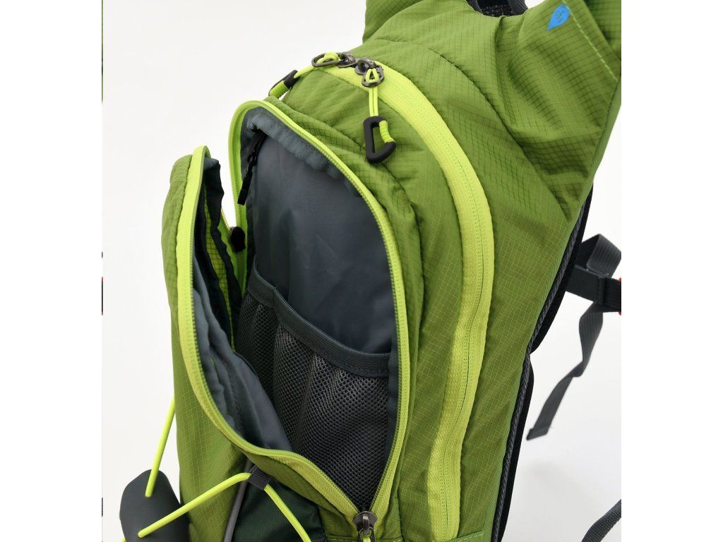 Batoh Cattara GreenW vyniká důmyslným systémem kapes, které vám usnadní orientaci ve věcech na každém výletě. Vnitřní prostory batohu jsou rozděleny na 2 části. Hlavní zipem zapínaná kapsa je opatřena vnitřní kapsou na pitný vak. Druhý menší prostor se zapínáním na zip je opatřen 2 sítěnými přihrádkami. Propracovaný šněrovací systém na čelní straně zabrání skrumáži věcí v batohu.