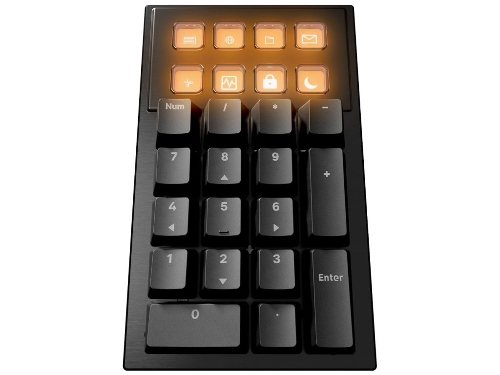 8 programovatelných kláves s displejem umožňuje zobrazení vlastních obrázků nebo animací. ARGB podsvícení s difuzéry na každém spínači zajišťuje rovnoměrné osvětlení jednotlivých kláves s možností nastavení atmosférických efektů.