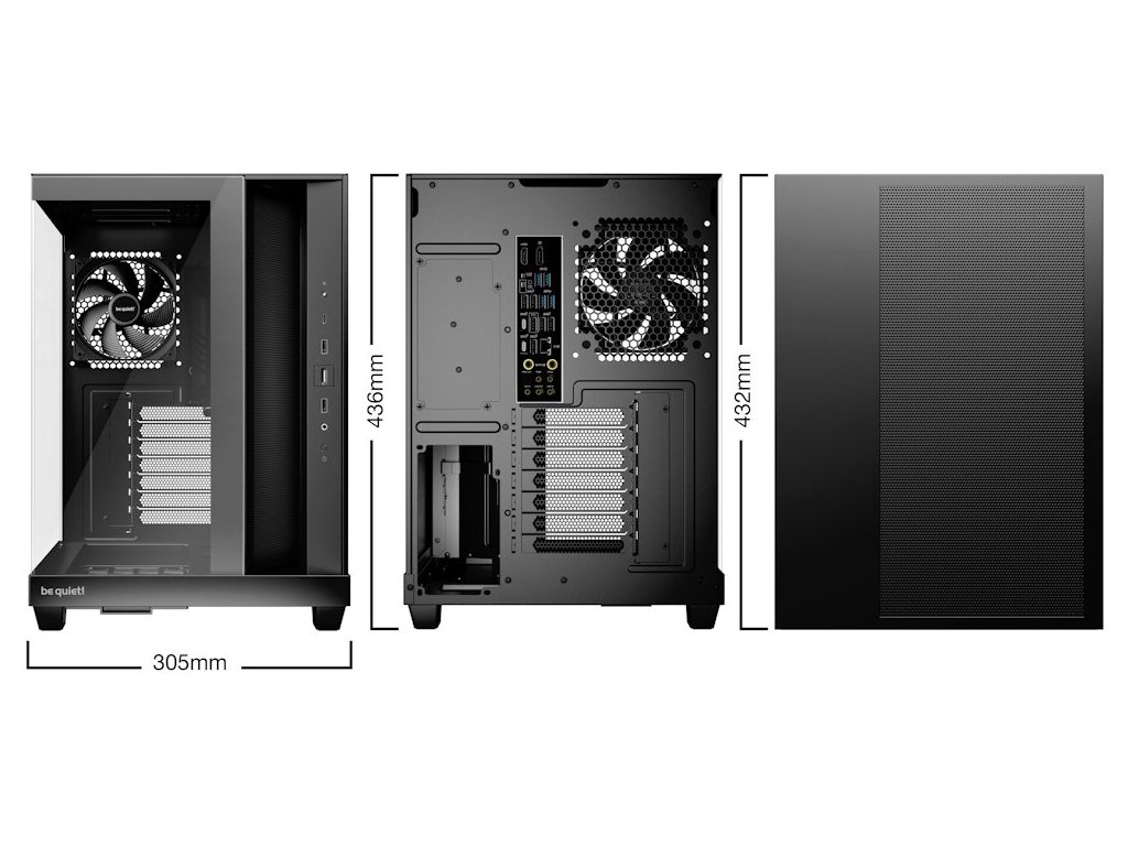 PC skříň Be quiet! LIGHT BASE 500 je jako moderní vitrína pro vaše počítačové komponenty. Disponuje průhlednou bočnicí a čelem, díky čemuž získáte čistý výhled na grafiku, chladič nebo ventilátory a můžete se nerušeně kochat svou vyladěnou konfigurací. Uvnitř skříně najdete 4 předinstalované ventilátory Pure Wings 3 PWM, které zajišťují tichý chod, efektivní průtok vzduchu a optimální chlazení.