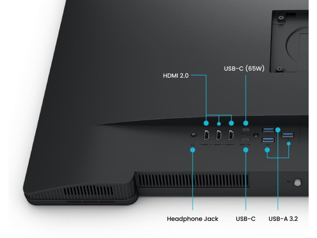 Konektory: 3× HDMI 2.0, 1× USB-C (65 W PD), 1× USB-C, 3× USB, 1× sluchátkový výstup