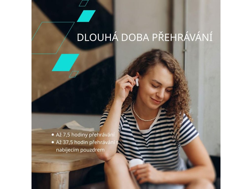 Technologie BT 5.3 zajišťuje vyšší provozní dobu sluchátek. S pouhými dvěma hodinami plného nabití můžete přehrávat hudbu a telefonovat 7,5 hodiny. S pouzdrem lze sluchátka používat až 37,5 hodiny.