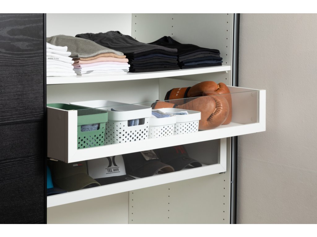Tento stylový a praktický box se vyrábí ze 100% recyklovaného plastu. Je tedy šetrnější k životnímu prostředí. Box má všechny stěny perforované malými dírkami. Je tedy ideální pro všechny předměty, které při skladování potřebují proudění vzduchu. Navíc doplní vybavení kuchyně, obývacího pokoje, ložnice i koupelny.