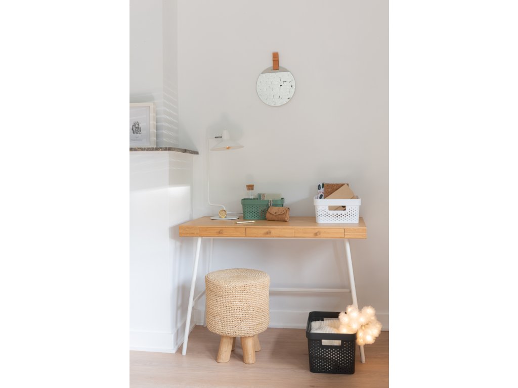 Tento stylový a praktický box se vyrábí ze 100% recyklovaného plastu. Je tedy šetrnější k životnímu prostředí. Box má všechny stěny perforované malými dírkami. Je tedy ideální pro všechny předměty, které při skladování potřebují proudění vzduchu. Na kratších stěnách se nachází dvě madla. Využijete je pro přenášení boxu. Navíc doplní vybavení kuchyně, obývacího pokoje, ložnice i koupelny.