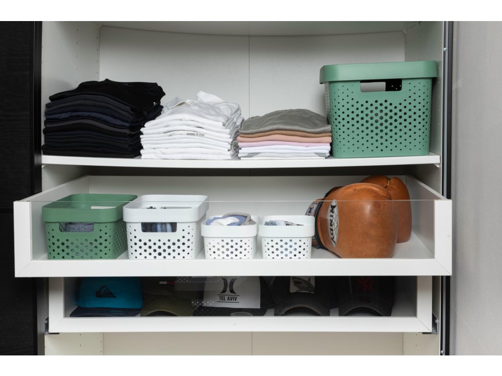 Box Infinity Dots od značky Curver se skvěle hodí do každé domácnosti. Přepravka o objemu 4,5 litru se hodí pro uložení a organizaci vašich věcí. Vložíte do něj menší hračky, hygienické potřeby, knížky, spodní prádlo, ponožky a spoustu dalších podobných předmětů. Pokud si pořídíte více těchto boxů, můžete je stohovat na sebe. Ušetříte tak prostor v místnosti.