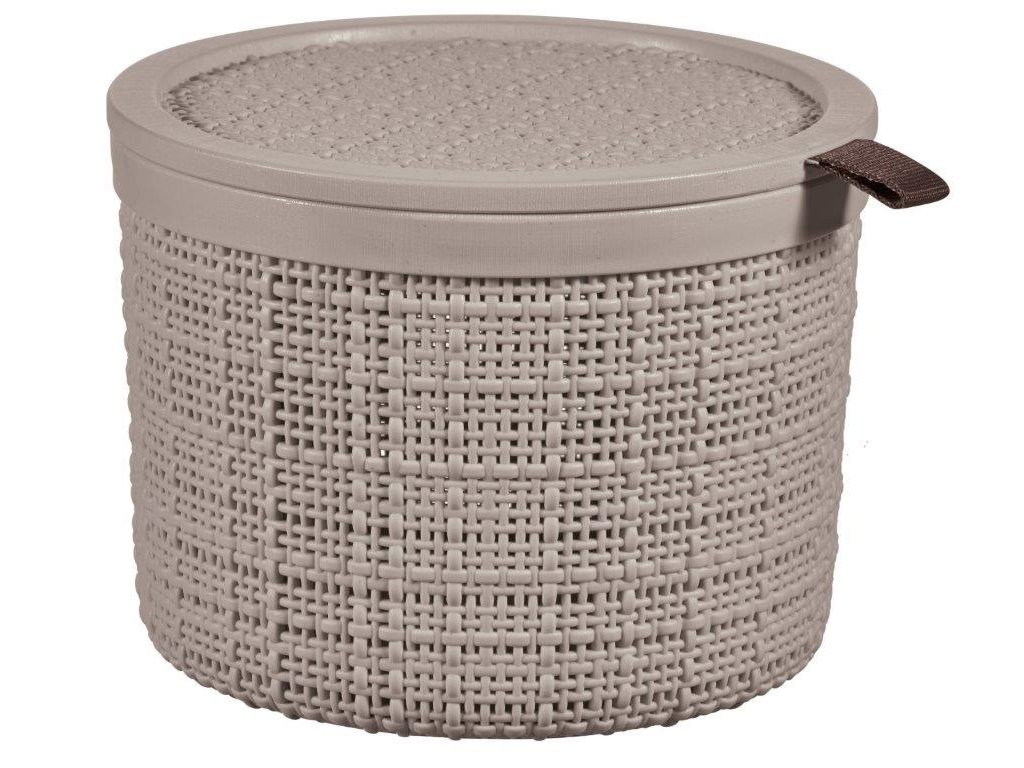Kulatý box Curver Jute je vybavený víčkem. Po jeho uzavření ho opět snadno otevřete. Na víku se totiž nachází praktické poutko.