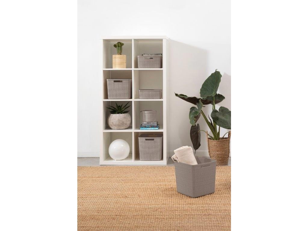 Tento stylový a praktický box se vyrábí ze 100% recyklovaného plastu. Je tedy šetrnější k životnímu prostředí. Jeho provedení připomíná tkaninu a perfektně zapadne do každého prostředí. Doplní vybavení kuchyně, obývacího pokoje, ložnice a klidně i koupelny.