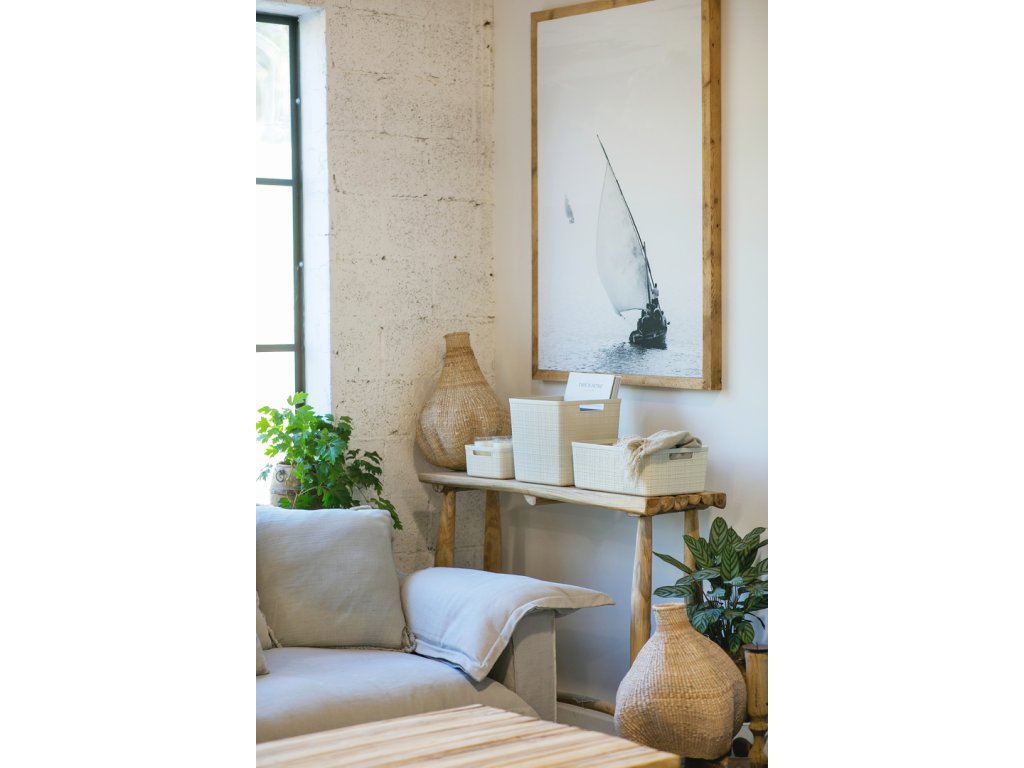 Tento stylový a praktický box se vyrábí ze 100% recyklovaného plastu. Je tedy šetrnější k životnímu prostředí. Jeho provedení připomíná tkaninu a perfektně zapadne do každého prostředí. Doplní vybavení kuchyně, obývacího pokoje, ložnice a klidně i koupelny.