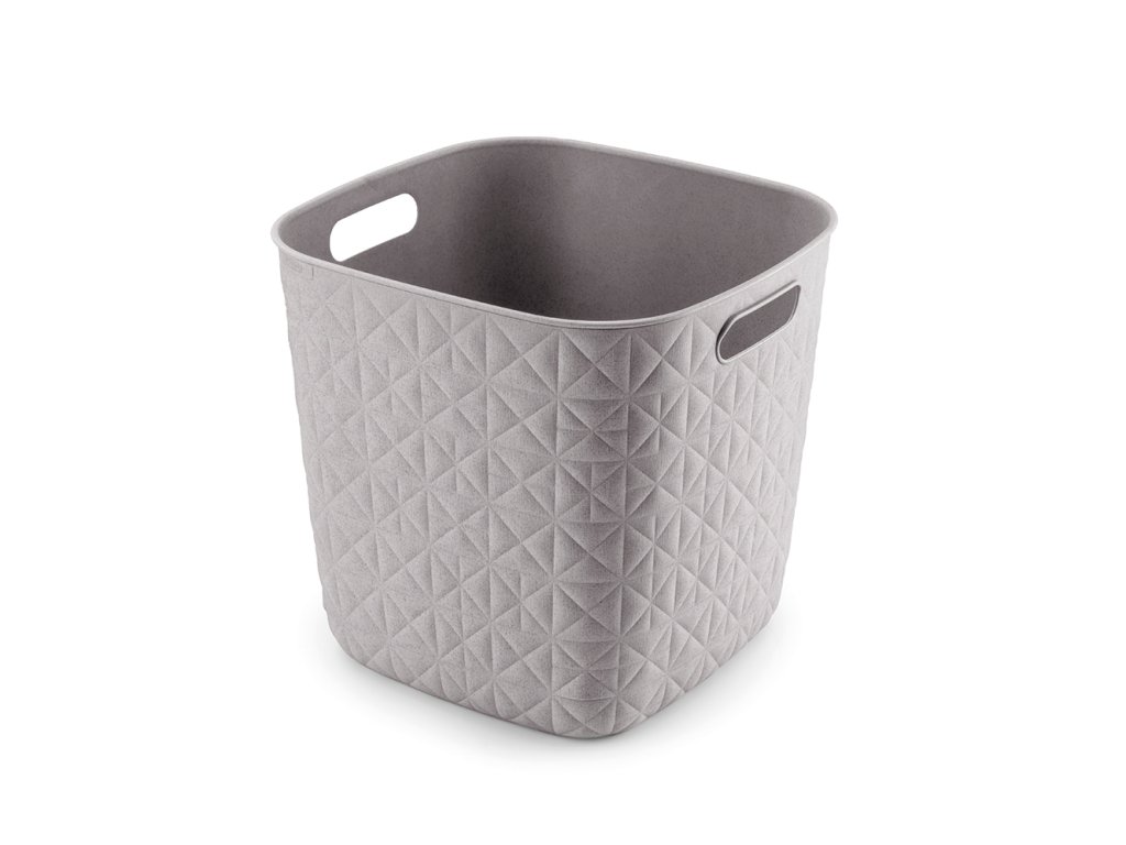 Tento stylový a praktický box se vyrábí ze 70% recyklovaného plastu. Je tedy šetrnější k životnímu prostředí. Zdobí ho jemná textura v podobě trojúhelníků a čtverců, která připomíná prošívanou tkaninu. Doplní vybavení kuchyně, obývacího pokoje, ložnice a klidně i koupelny.