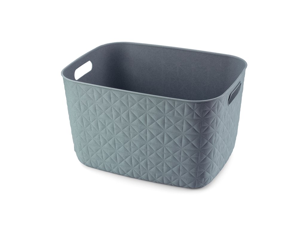 Tento stylový a praktický box se vyrábí ze 70% recyklovaného plastu. Je tedy šetrnější k životnímu prostředí. Zdobí ho jemná textura v podobě trojúhelníků a čtverců, která připomíná prošívanou tkaninu. Doplní vybavení kuchyně, obývacího pokoje, ložnice a klidně i koupelny.