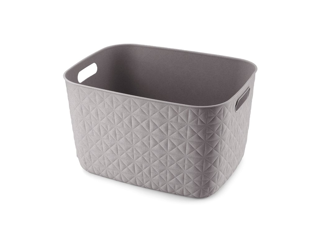 Tento stylový a praktický box se vyrábí ze 70% recyklovaného plastu. Je tedy šetrnější k životnímu prostředí. Zdobí ho jemná textura v podobě trojúhelníků a čtverců, která připomíná prošívanou tkaninu. Doplní vybavení kuchyně, obývacího pokoje, ložnice a klidně i koupelny.