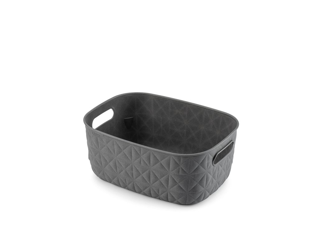 Tento stylový a praktický box se vyrábí ze 70% recyklovaného plastu. Je tedy šetrnější k životnímu prostředí. Zdobí ho jemná textura v podobě trojúhelníků a čtverců, která připomíná prošívanou tkaninu. Doplní vybavení kuchyně, obývacího pokoje, ložnice a klidně i koupelny.